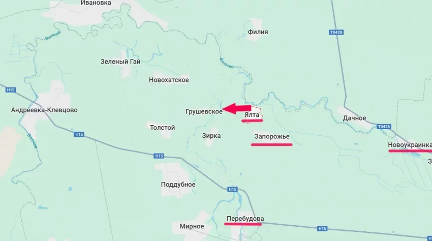 Пока же российская армия после освобождения Ялты на западе ДНР продолжает продвижение в сторону населённых пунктов Грушевское и Звезда (Зирка), что севернее дороги Н15 на Запорожье.