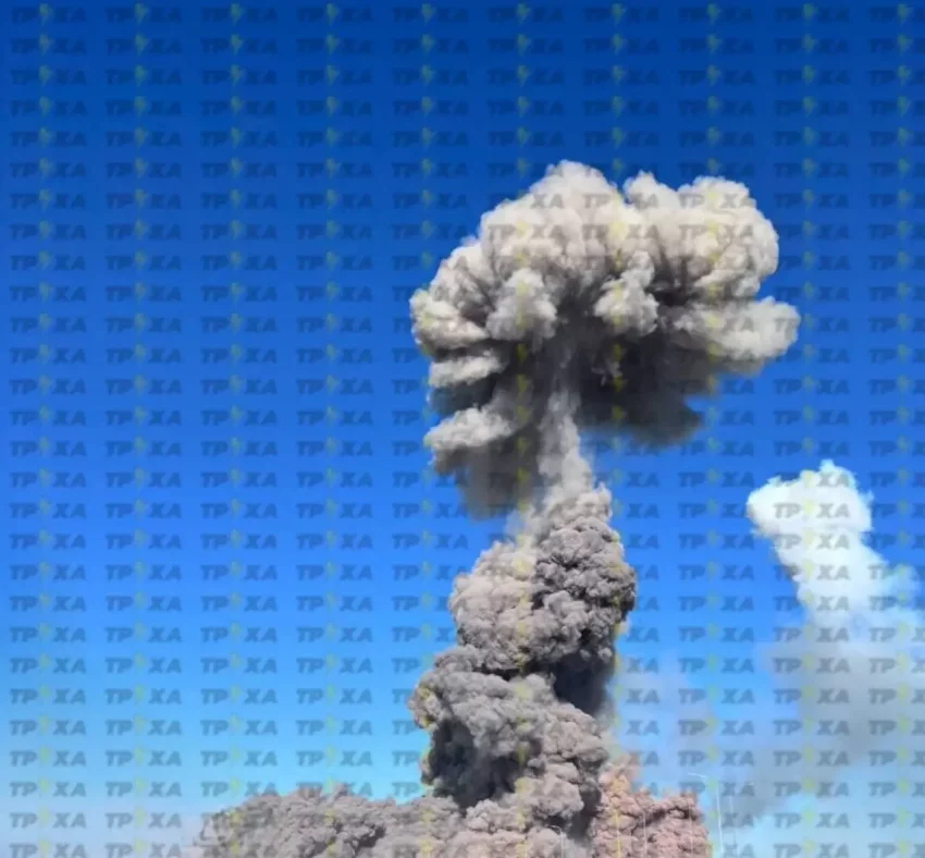 Местные жители публикуют в сети кадры после взрывов. На них можно видеть огромный столб дыма и огня, который поднимается над поражённой целью. Высота столба на первом этапе после прилёта сравнима с высотой 20-этажного здания.