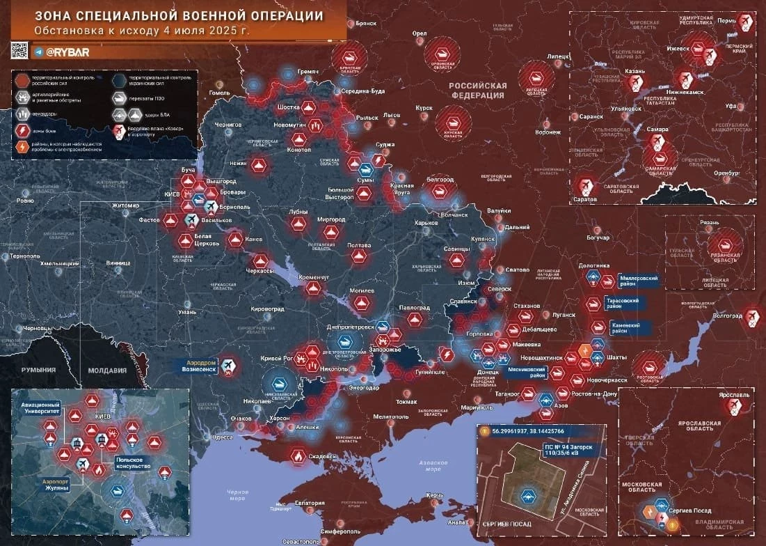 Карта боевых действий на Украине. Обстановка в зоне СВО на 05.07.2025