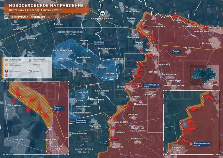 На Запорожском участке ВС РФ фактически зачистили северо-западную часть Каменского. Отдельные группы штурмовиков заходят в Плавни, но закрепления там пока нет. Севернее Лобкового и к северо-востоку от Степового наши бойцы выбили противника из опорников и продвинулись по лесополосам. Ожесточённые бои в районе Малых Щербаков. Продолжаются бои в Малой Токмачке.