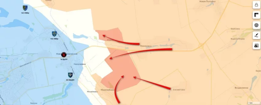 "После форсирования бывшего Каховского водохранилища наши бойцы атаковали позиции ВСУ в северо-западной части населенного пункта и продвинулись там, создав новый плацдарм", - говорится в публикации военкоров.
