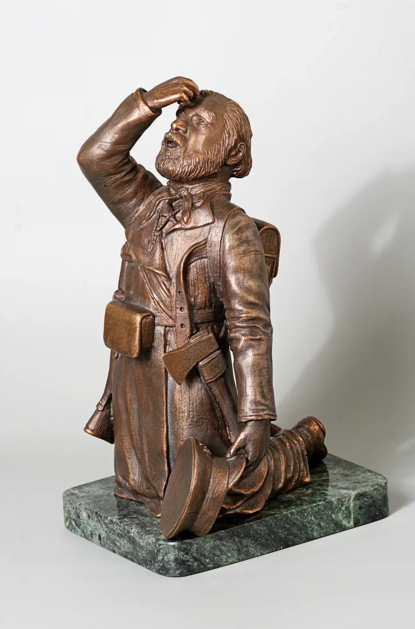 А вот это тоже фигурка ратника Пензенского ополчения, только отлита из бронзы, и это уже не «солдатик», а самая настоящая скульптура пензенского скульптора Германа Феоктистова. Называется «Молитва ополченца». Ну а то, что молились ополченцы постоянно и очень часто, известно очень хорошо. Крестьянам ведь с детства вбивали в головы, что «за царем служба, а за богом молитва не пропадают!»
