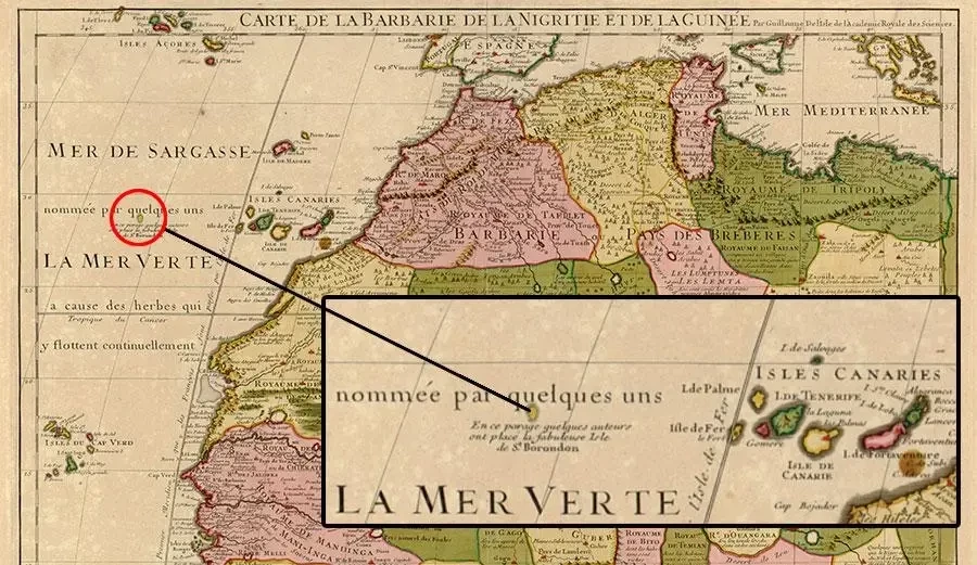 Однако один ирландский монах VI века считал, что их восемь! Да и не он один — на старых картах фигурировал еще один остров — Сан-Борондóн. Еще Птолемей во II веке писал в своей «Географии» о том, что кроме известных семи Канарских островов существует восьмой — Aprositus Nesos (недостижимый, невидимый). Знал о его существовании и Христофор Колумб.