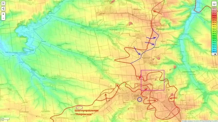 По сути, Покровск уже считается потерянным для украинских сил. То, что ещё продолжается на отдельных улицах, представляет собой скорее локальные столкновения и зачистки, нежели организованную оборону. Подразделения группировки «Центр» закрепляются в занятых кварталах, постепенно продвигаясь вглубь городской застройки.