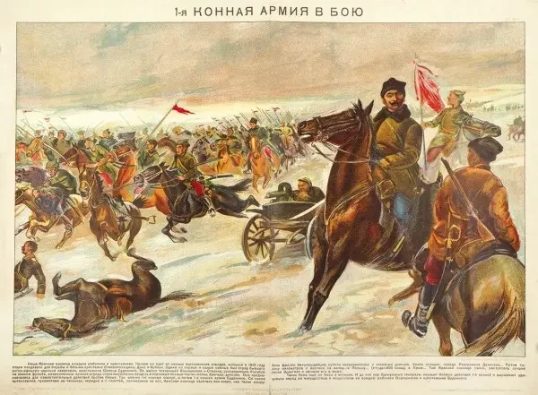 Плакат «Первая Конная армия в бою» (по картине Е. Иванова)