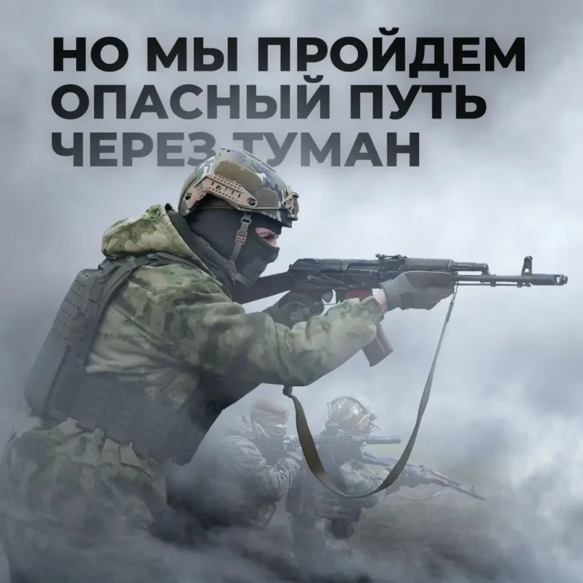 В пресс-службе Минобороны РФ процитировали слова из песни «Туман» известной российской рок-группы «Сектор Газа». Цитата была опубликована вместе с фотографией бойца, который продвигается через густую туманную дымку.