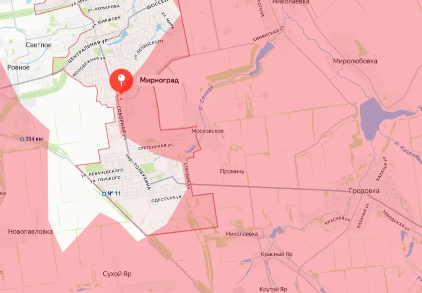 После перехода под контроль ВС РФ Сухого Яра, который выступал в качестве важного звена оборонительного барьера ВСУ в южной части агломерации, российские войска продвинулись к станции «№11» на юго-восточной окраине Мирнограда (Димитрова). Это единственная железнодорожная станция агломерации, которая пока ещё остаётся под контролем ВСУ. Правда, контроль этот в большей степени уже формальный.