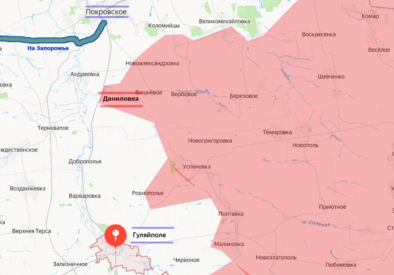 На данный момент Вооружёнными силами России перерезана автодорога Покровское (Днепропетровская область) – Гуляйполе (Запорожская область). Причём до бывшего райцентра Покровское остаются считанные километры, и это может привести и к перерезанию для ВСУ дороги Покровское – Запорожье, что нанесёт мощный удар по всей системе логистики востока и северо-востока Запорожского региона, а заодно и бывшего Покровского района Днепропетровщины.