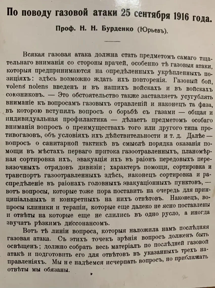 Статья Бурденко о поражении боевыми газами