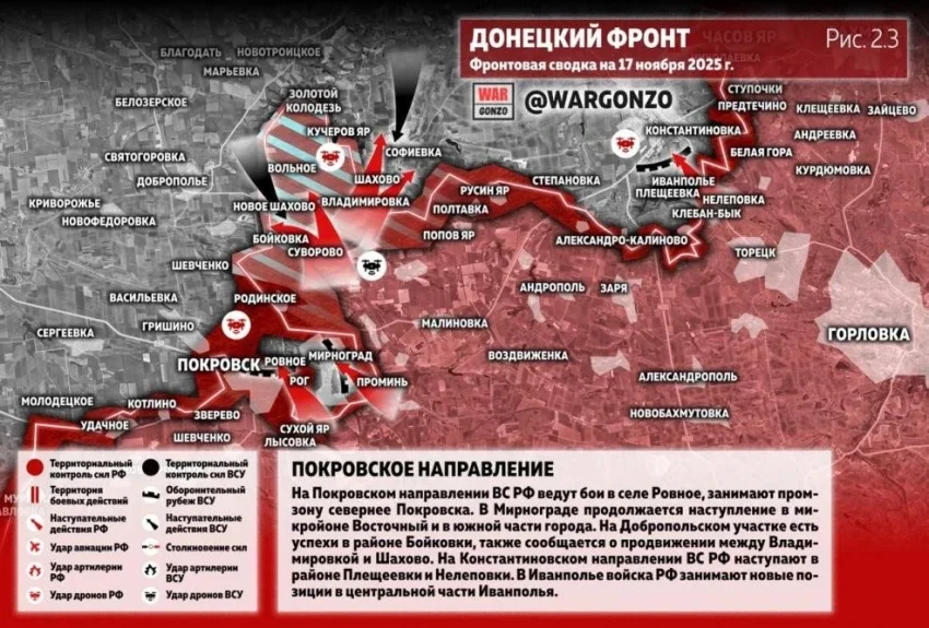 ВС России ведут ожесточённые бои в Родинском на Покровском направлении: свежие данные на 17.11.2025