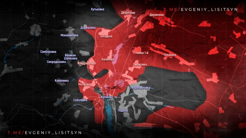 На Купянско-Лиманском направлении отмечаются интенсивные боестолкновения в Купянске, ВСУ пытаются контратаковать на левобережье с опорой на Соболевку. Вместе с этим фиксируются боестолкновения в районе Дерилово и Ставков.