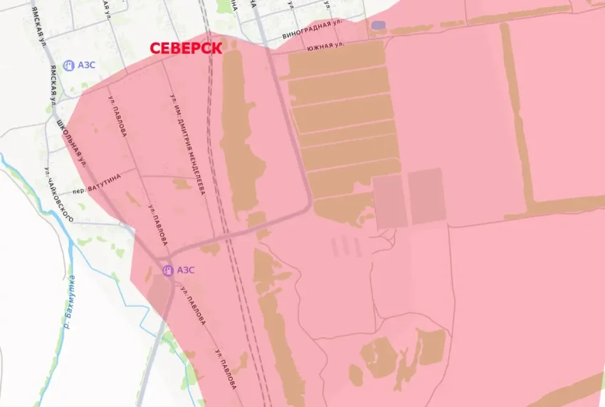 Как видно, противник потерял контроль над южной частью города Северск. Ранее, напомним, наши войска взяли под контроль и северную, удалённую, часть города, которая располагается неподалёку от Дроновки, которая тоже была освобождена.