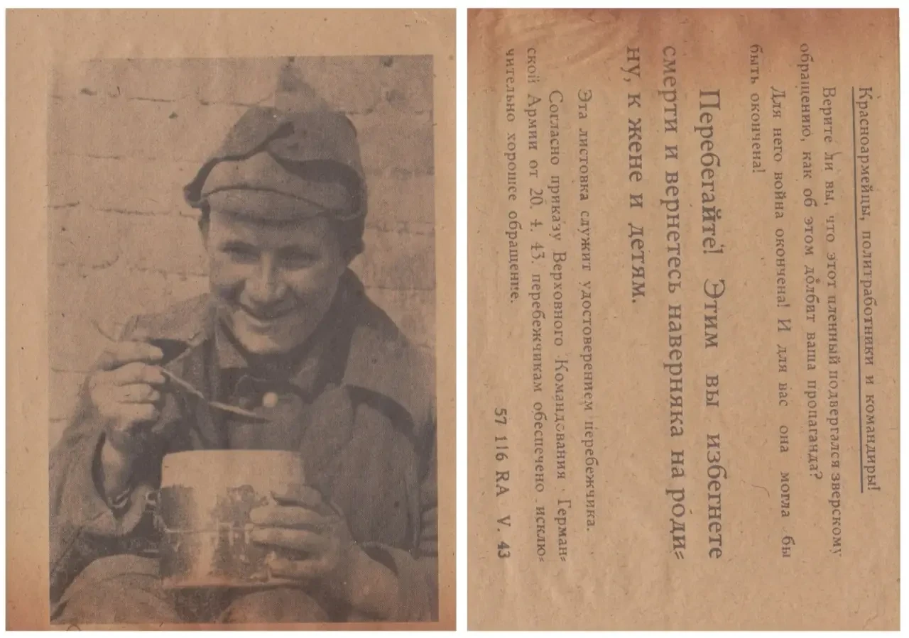 Листовка, напоминающая советским солдатам о вкусной еде, которая якобы ждёт их в немецком плену