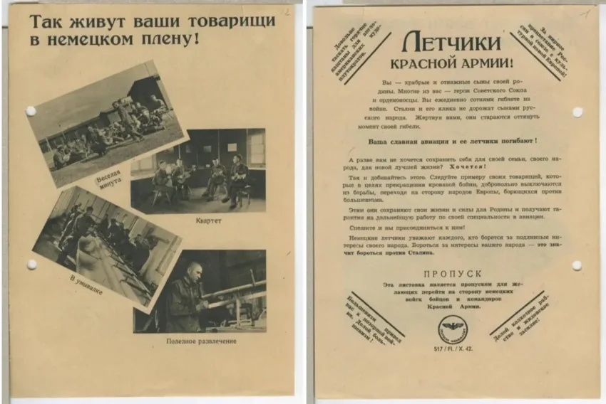 Фашисты понимали, что для того, чтобы советские солдаты начали сдаваться в плен, необходимо пообещать им то, в чём они в первую очередь нуждались. В первую очередь это уход от войны, вкусную еду и тёплое жильё. Для этих целей было создано огромное количество листовок, показывающих хорошую жизнь в немецком плену. На большинство подобных листовок помещались фотографии советских бойцов, якобы уже перешедших в плен. На фотографиях изображалось, как солдаты едят вкусную еду, работают по специальности, отдыхают, играют в карты, участвуют в праздничных мероприятиях в лагерях и прочее.