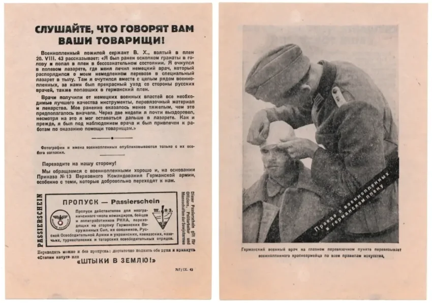 Наиболее узнаваемыми из подобных пропагандистских материалов являются листовки «Слушайте, что говорят ваши товарищи!». В них печаталась фотография военнопленного и от его имени рассказывалось о том, как хорошо немцы с ним обращаются, и о том, что все слова советской пропаганды о немцах — ложь.