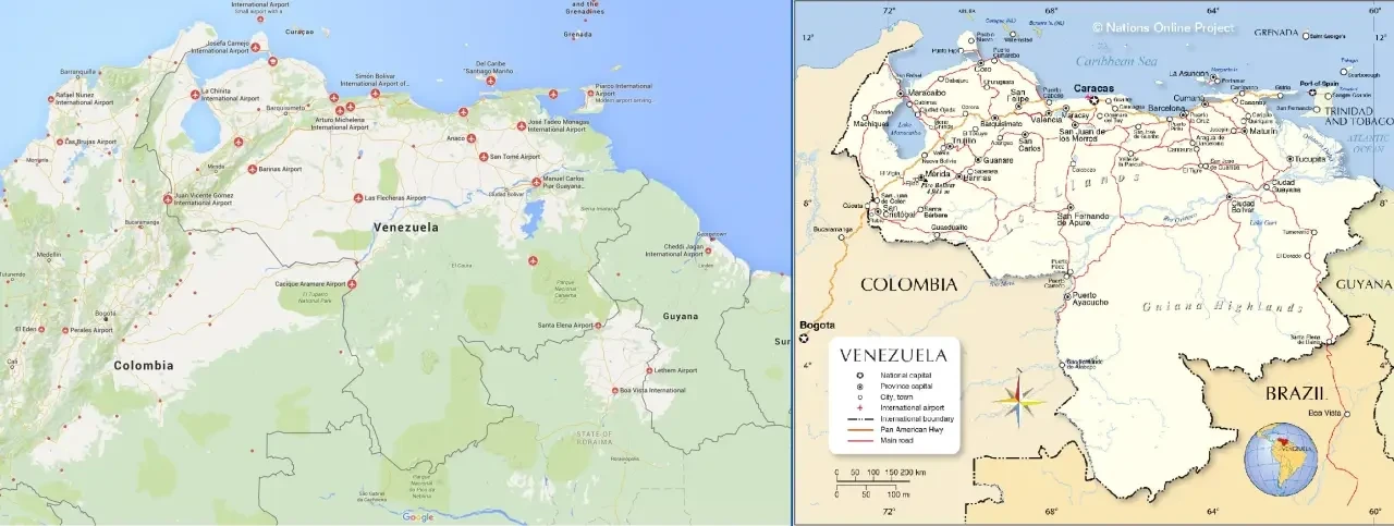 Сеть аэродромов и автомобильных дорог Венесуэлы