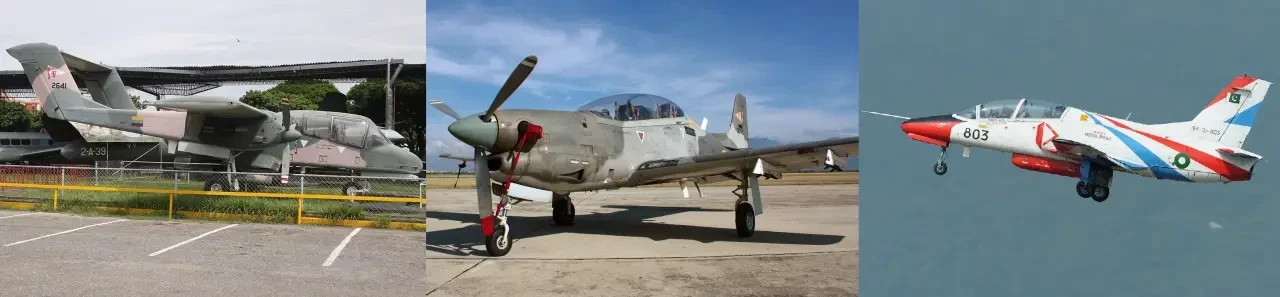 Штурмовик Rockwell OV-10A/E Bronco, УТС Embraer EMB 312 Tucano и УТС K-8W Karakorum