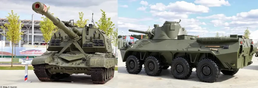 Ещё имеется под сотню самоходных артиллерийских установок (САУ), в том числе 48 единиц 152-мм 2C19 «Мста-С» и 13 единиц 120-мм 2С23 «Нона-СВК».