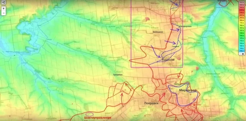 Также стало известно об успешных действиях ВС России на Мирноградском направлении. Российские подразделения замкнули кольцо окружения вокруг украинской группировки, удерживающей позиции в Мирнограде, сообщил Подоляка.