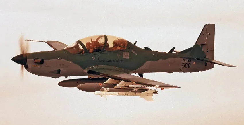Компания Embraer рассказала о потенциале A-29 как убийцы беспилотников. Super Tucano — это двухместный одномоторный турбовинтовой самолёт, широко распространённый по всему миру как в качестве учебного, так и в качестве лёгкой ударной платформы. Стандартная конфигурация самолёта включает два пулемёта 50-го калибра (12,7-мм), по одному в каждом крыле. Самолёт также может нести различные управляемые и неуправляемые боеприпасы и другие грузы на четырёх узлах подвески под крыльями и ещё на одном узле под центральной частью фюзеляжа.