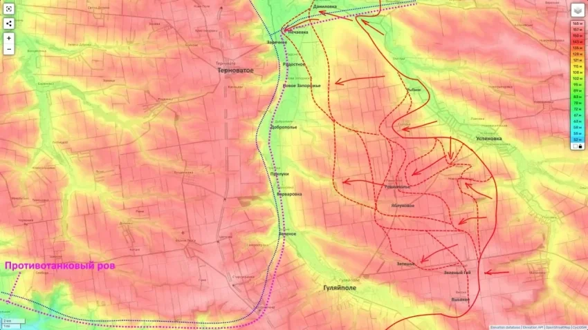 Село Затишье, расположенное менее чем в двух километрах к северо-востоку от Гуляйполя, фактически перешло под контроль подразделений 5-й Армии (5А) ВС РФ.
