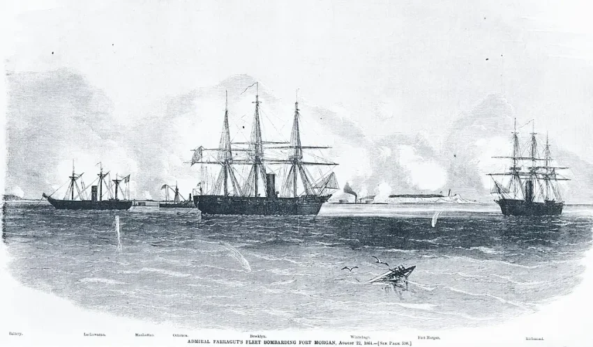 Канонерка южан «Гэйнс» попыталась уйти под прикрытие форта Морган, но удачно выпущенный снаряд «Хартфорда» попал ей в борт и вывел из строя машины. Канонерка была тут же атакована шлюпом «Кеннебек», 279-мм снаряд с которого проделал еще одно отверстие в корпусе и затопил крюйт-камеру. Капитан понял, что корабль тонет, выбросил «Гэйнс» на берег, после чего его экипаж разбежался кто куда.
