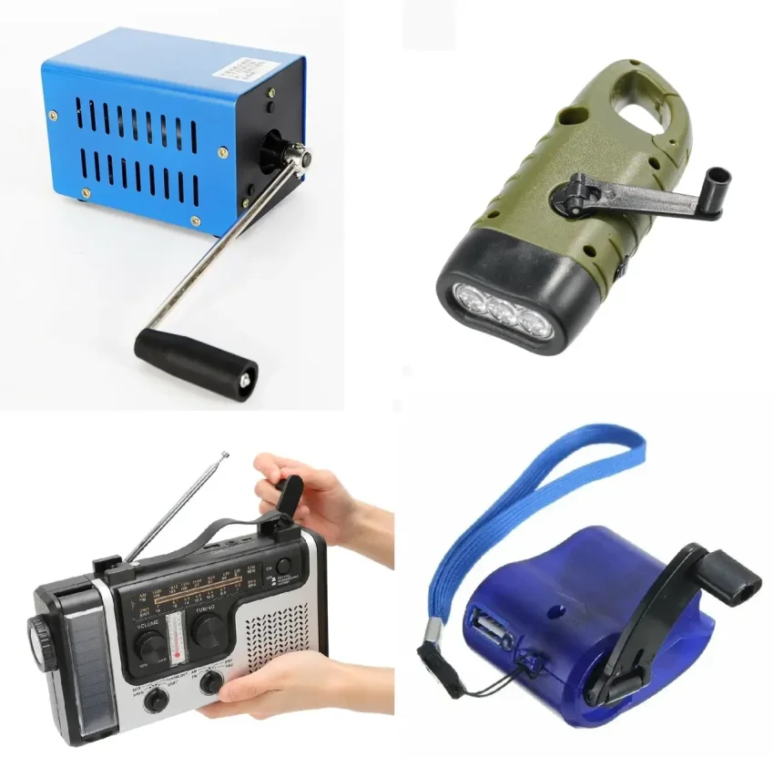 Также существуют различные динамо-машинки, как предназначенные для заряда пауэрбанков, так и встроенные в фонарики и радиоприёмники. Их основная проблема в том, что почти все они крайне низкого качества, выполнены из пластика, что в сочетании с механическими нагрузками приводит к быстрому выходу их из строя, да и заряжать от них хоть что-то очень долго и нудно – солнечная батарея точно лучше.