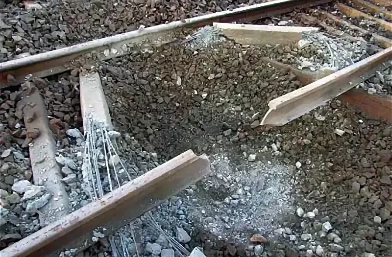 Вызывает вопросы и фотография с места подрыва (верхнее фото). Кусок рельса, действительно, вырван (или вырезан?), однако не только шпалы, но и гравий вообще не затронуло взрывной волной. Ниже фотографии реальных подрывов ж/д-полотна.