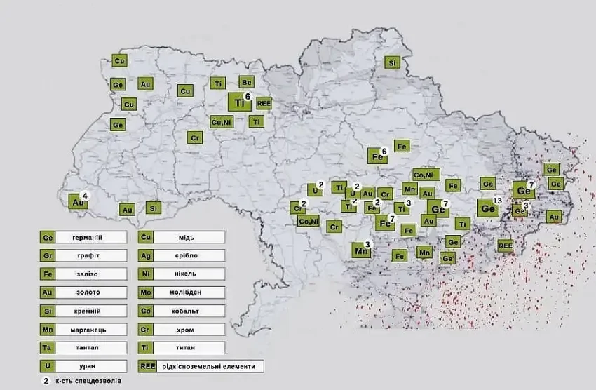 На самом деле, тех металлов, которые не по мнению политиков, а на деле являются редкоземельными, на Украине практически нет. Литий, востребованный в производстве аккумуляторов, который не РЗМ в классическом понимании, да, имеется. Но крупнейшее его месторождение в ДНР уже перешло под контроль ВС РФ. Титан есть, но к редкоземельным металлам он не относится.