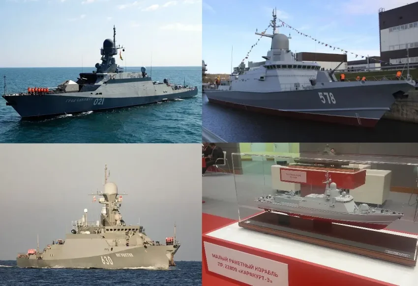 МРК проекта 21631 «Буян-М» (слева) и МРК проекта 22800 «Каракурт» (справа)