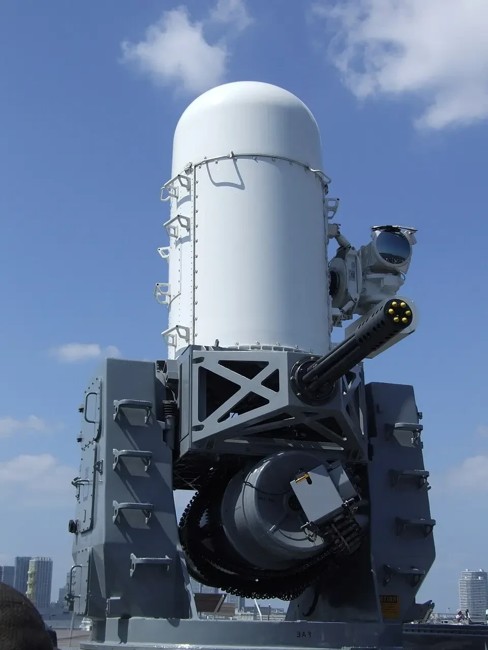 3 пушки Тип 1130 CIWS, 11 стволов калибром 30-мм у каждой, и 3 ПУ ЗРК малой дальности HHQ-10 SAM на 24 ракеты каждая.