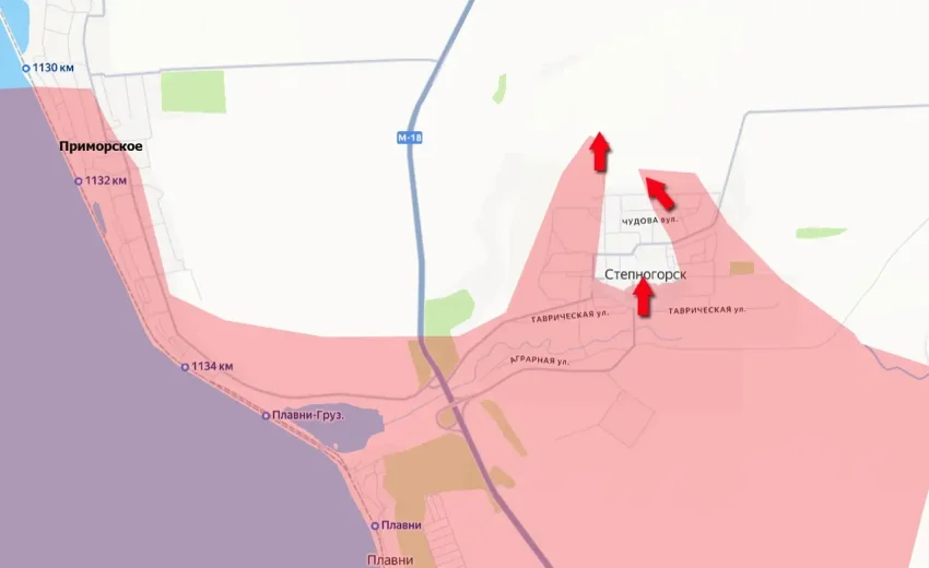 С Запорожского направления поступают позитивные новости о продвижении уже и в северной части Степногорска. От пгт Степногорск до южной окраины Запорожья – около 18 км.