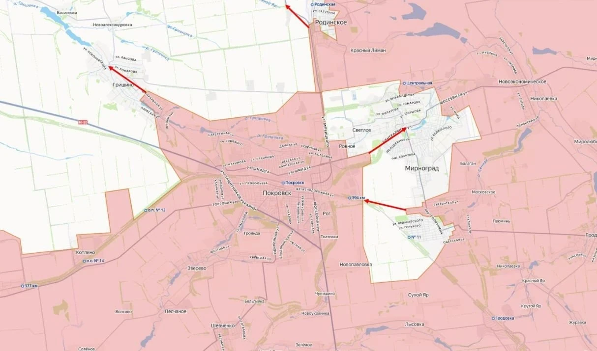 На Красноармейском фронте ВС РФ наступают со стороны Красноармейска далее на север и северо-запад. Идут позиционные бои в юго-восточной части Гришино. Продолжается боевая работа армии России в Димитрове. На рубеже Суворово - Никаноровка после ожесточённых боёв выровнена линия фронта, противник оттеснён от ключевых высот. ВС РФ дожимают врага в Софиевке, теснят в Торецком, чтобы создать плацдарм вдоль реки Казённый Торец, которая будет прикрывать левый фланг при продвижении к Дружковке.