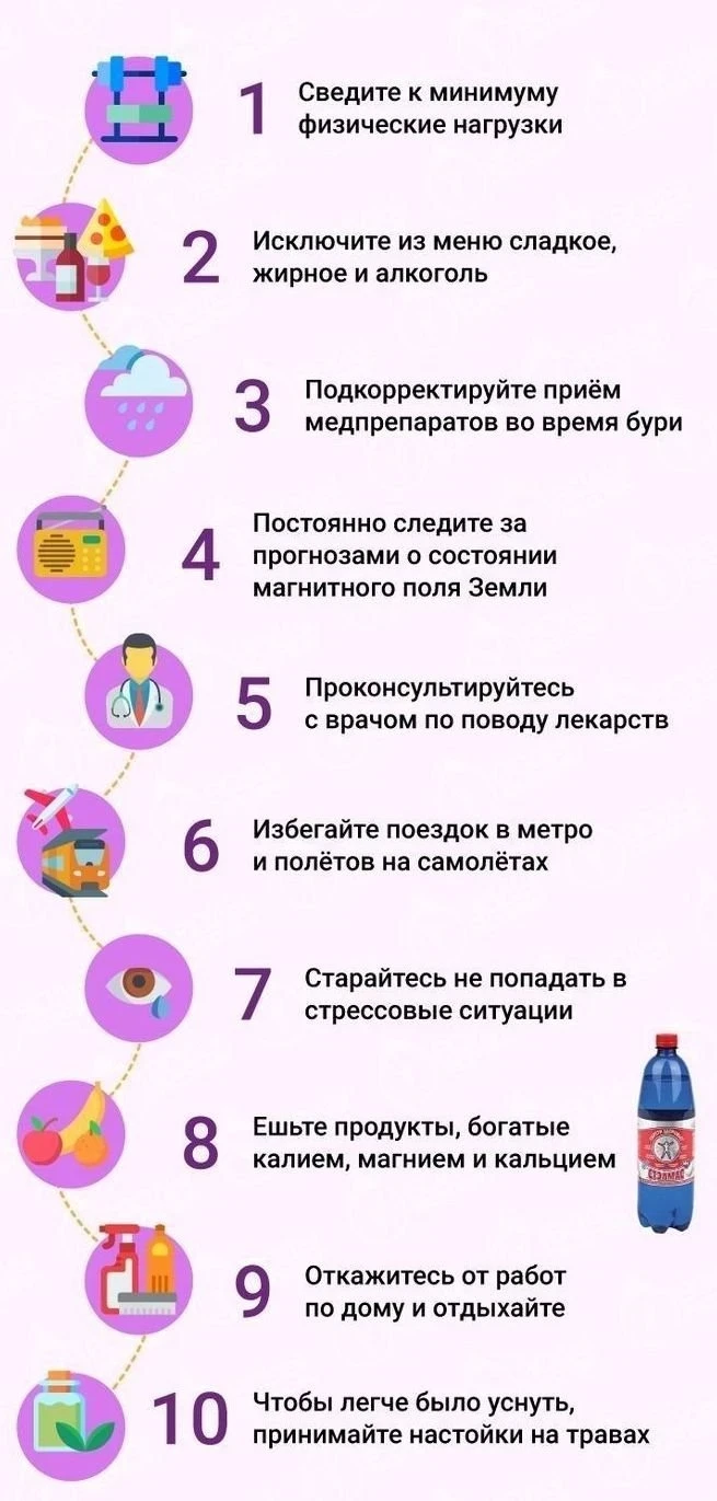 «Во время магнитных бурь многие жалуются на головную боль, повышенную утомляемость, раздражительность, нарушение сна и проблемы с концентрацией внимания. Люди с хроническими заболеваниями сердца также сталкиваются с усилением симптомов гипертонической болезни, учащённым сердцебиением и скачками давления», - заявил он.