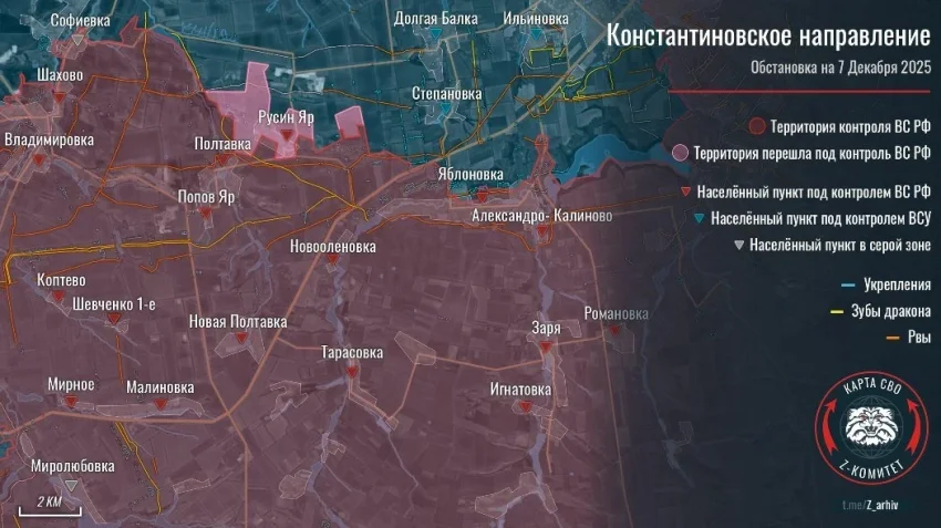 Последние новости » Эксклюзив » ВС РФ окружают Северск с двух сторон, карта боевых действий в зоне СВО на утро 08.12.2025