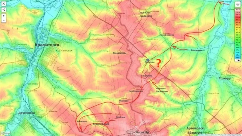 Особое внимание военкор уделяет тактической важности высот у Малиновки, расположенной северо-западнее Привольного. По его мнению, занятие этого района даст российским войскам господствующие высоты, что откроет возможность для «полномасштабного воздушного наступления на логистику Краматорской группировки противника».