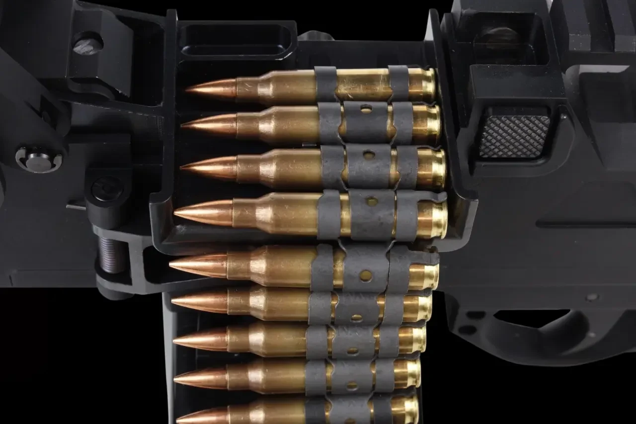 Пулемёт использует стандартные натовские рассыпные ленты. Подача боеприпасов осуществляется слева. Использованные звенья выбрасываются через собственное окно над окном выброса гильз. Ленты различной ёмкости предлагается переносить в мягком коробе, закрепляющемся под ствольной коробкой.