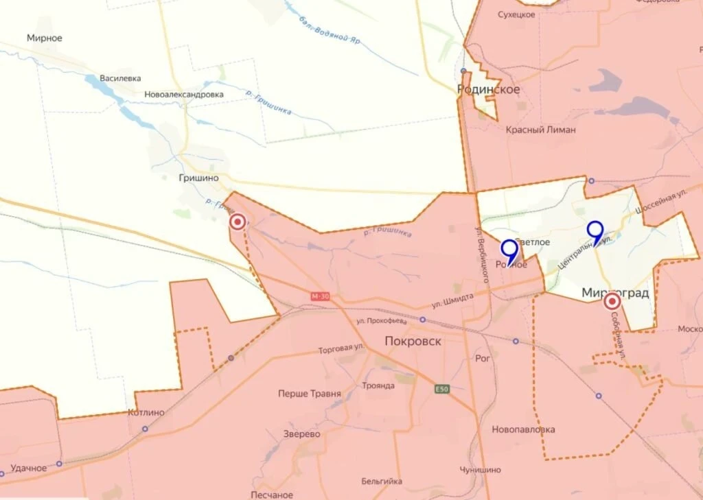 Красноармейское направление: идут зачистки Светлого и боевые действия в Димитрове за южные и восточные микрорайоны.