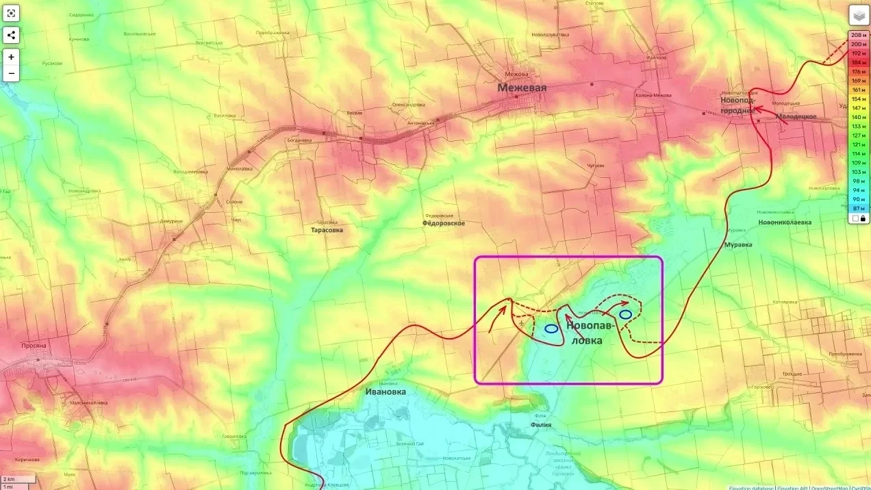 В Новопавловке группировка «Центр» добилась оперативного окружения украинских подразделений в западной части этого населённого пункта. Противник удерживает лишь один укрепленный район на севере. Освобождение этого крупного населенного пункта позволит ВС РФ развить наступление на юг, в сторону Межевой.