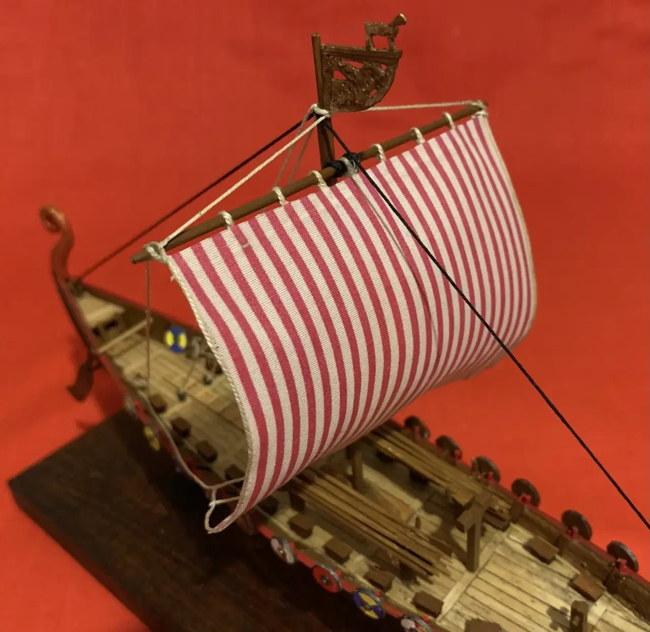 Готовая модель с наклеенными по бортам щитами воинов. Фотография автора