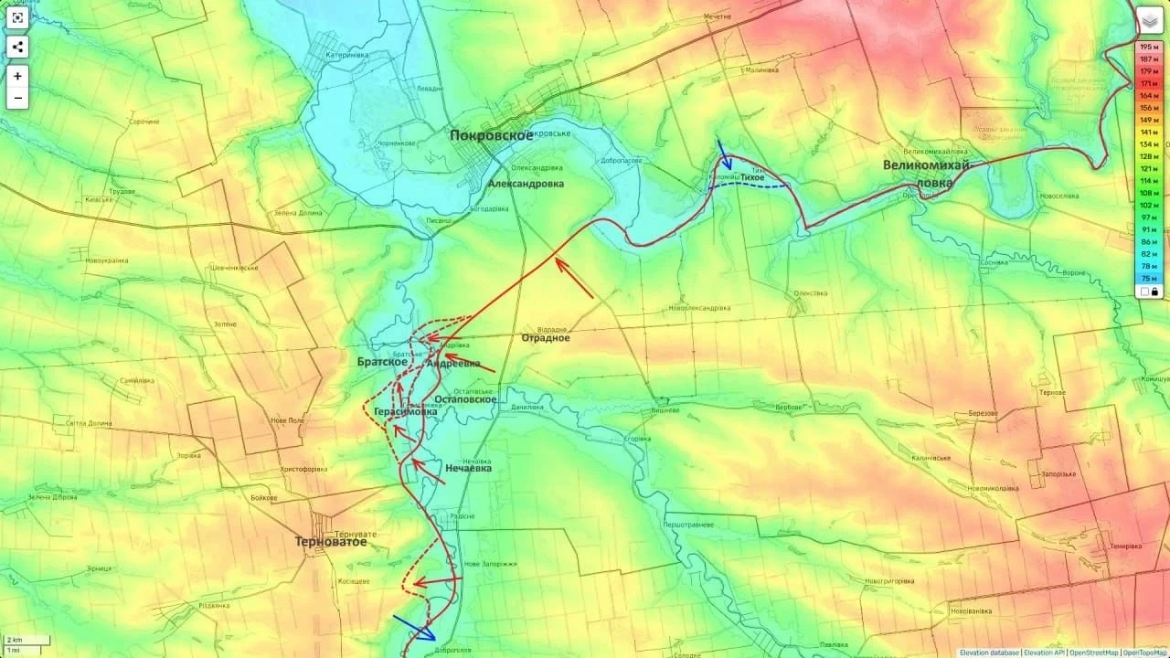 По мнению блогера, дальнейшее их расширение совместно с утерей Братского грозит обрушением всей линии обороны ВСУ на последнем серьезно-укрепленном рубеже обороны противника на данном участке фронта.