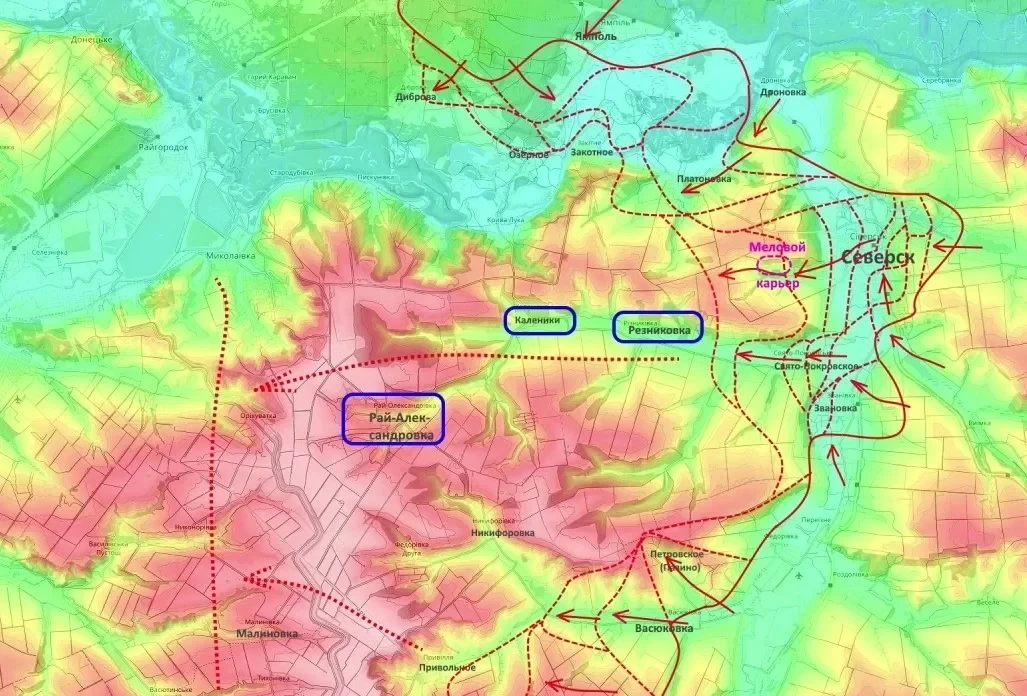 Взятие Рай-Александровки и водораздельного хребта имеет стратегическое значение. Контроль над высотами лишит противника возможности эффективно использовать FPV-дроны (из-за потери радиогоризонта) и позволит ВС РФ наладить устойчивую логистику в долинах рек, одновременно уничтожая коммуникации врага. В ближайшие 1-2 месяца здесь ожидаются решающие бои за ключи к Славянску.