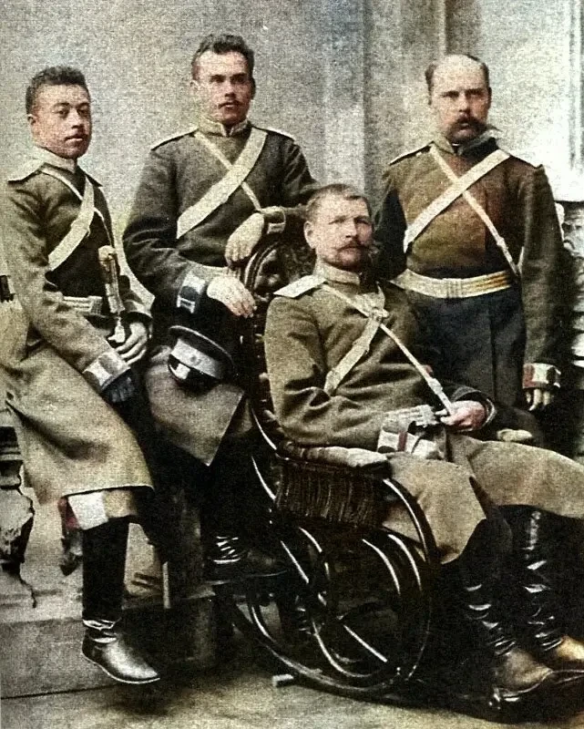 На этом снимке мы видим хорунжего Александра Дутова (крайний слева) с другими офицерами Первого Оренбургского казачьего полка