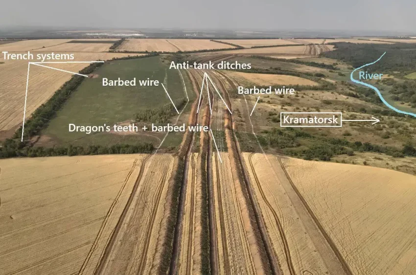 На кадрах хорошо видно, что оборону строят не на авось. Схема знакомая: несколько линий противотанковых рвов, между ними – «Егоза», тетраэдры и другие инженерные сооружения. Идея простая – замедлить технику, спутать расчеты наступающих, выиграть время. Правда, оно все равно не на стороне украинского режима.