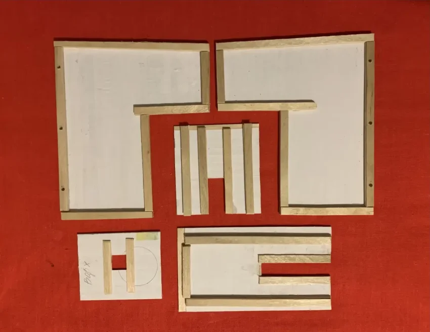 Детали модели ассирийского тарана. Вид с внутренней стороны. Задняя стенка башни и крыша отсутствуют. Их нужно настилать в последнюю очередь. Фотография автора