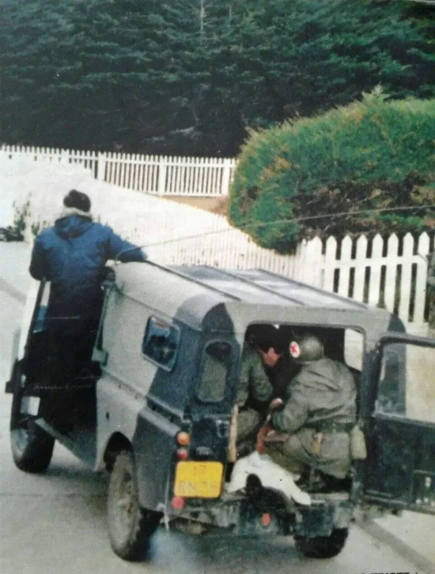 Несколько ранее капрал Стефан Йорк и его отделение занимали укрытие в западной части мыса Нэви Пойнт. Увидев, как к гавани Порт-Стэнли приближаются аргентинские БТРы, морской пехотинец Рик Оверхолл произвёл выстрел из РПГ «Карл-Густав», коим, по его словам, поразил десантный катер (?) и убил всех находящихся на борту. В общем, выражение Бисмарка насчёт того, что нигде так не врут, как на войне и на охоте — всесильно, поскольку верно! Скорее всего, за подбитый «десантный катер» посчитали тот БТР, у которого слетели гусеницы.