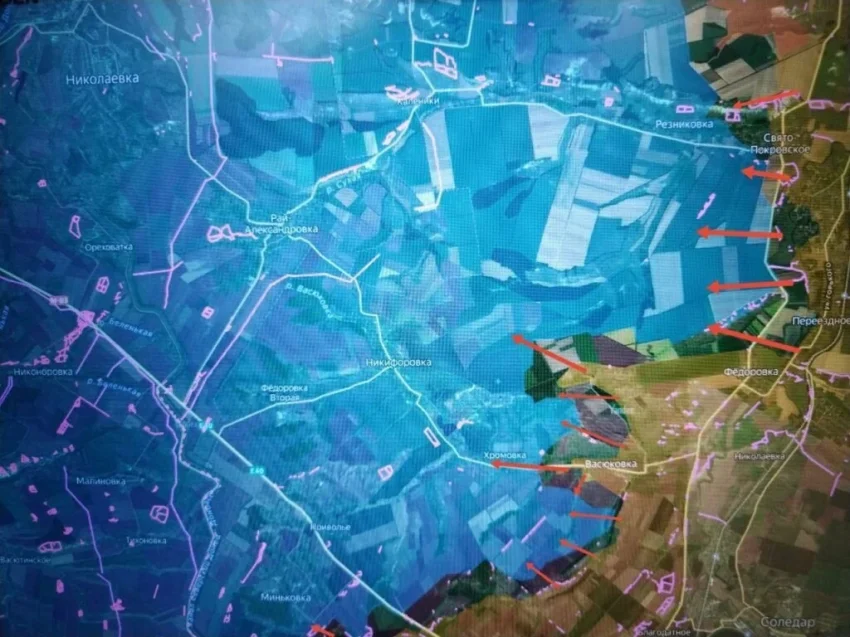 На Северском направлении идёт продвижение вглубь обороны ВСУ широким фронтом по линии Нелеповское - Васюковка - Резниковка. Местами продвижение достигает 4 км. Сообщают о начале боёв в районе Бондарного, западнее Васюковки. В Свято-Покровском остаётся очаговое сопротивление ВСУ. Гарнизон врага в Резниковке начинает испытывать серьёзные проблемы, а дорога на Рай-Александровку находится под огневым контролем наших войск. В районе Закотного и Озёрного позиционные бои.
