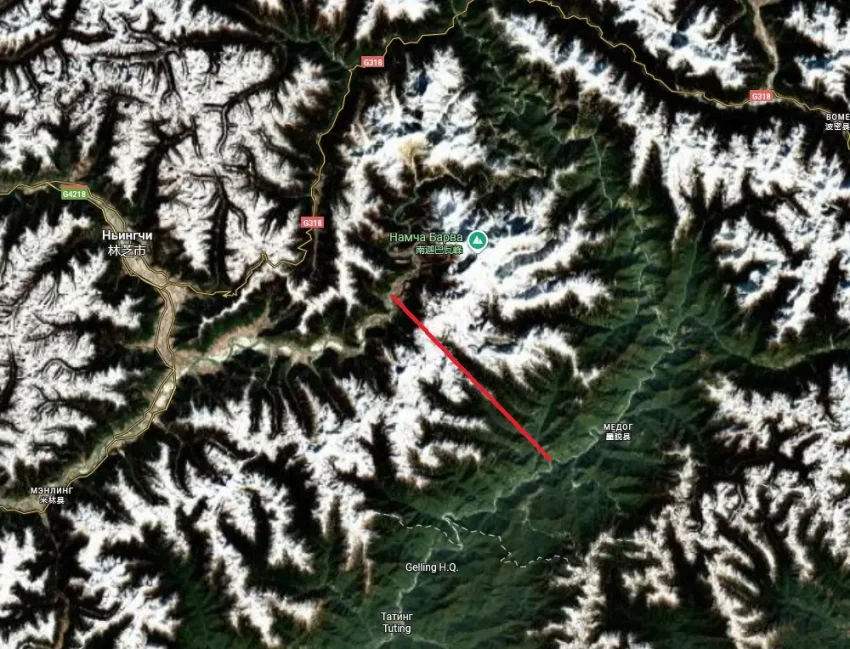 Район строительства будущей плотины «Медог»