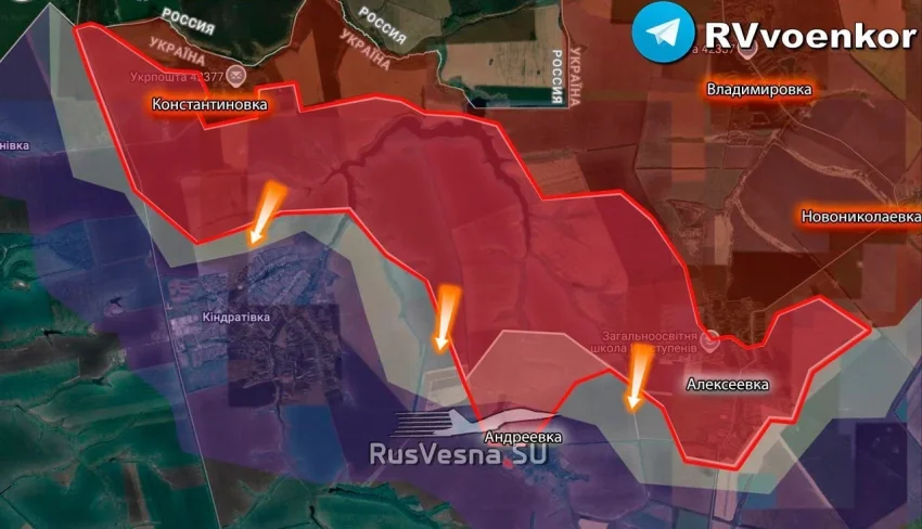 Вооружённые силы России продвигаются на нескольких участках линии фронта. Один из таких участков расположен к северу от Покровско-Мирноградской агломерации, которая была освобождена ВС РФ.