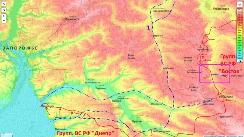 Восточнее российские войска подошли к селу Павловка, а также продвигаются на северо-восток от ранее освобождённого Лукьяновского. Это может позволить перерезать основной маршрут снабжения ВСУ в Орехове, а кроме того выйти к Конке на узких участках для последующего её форсирования.